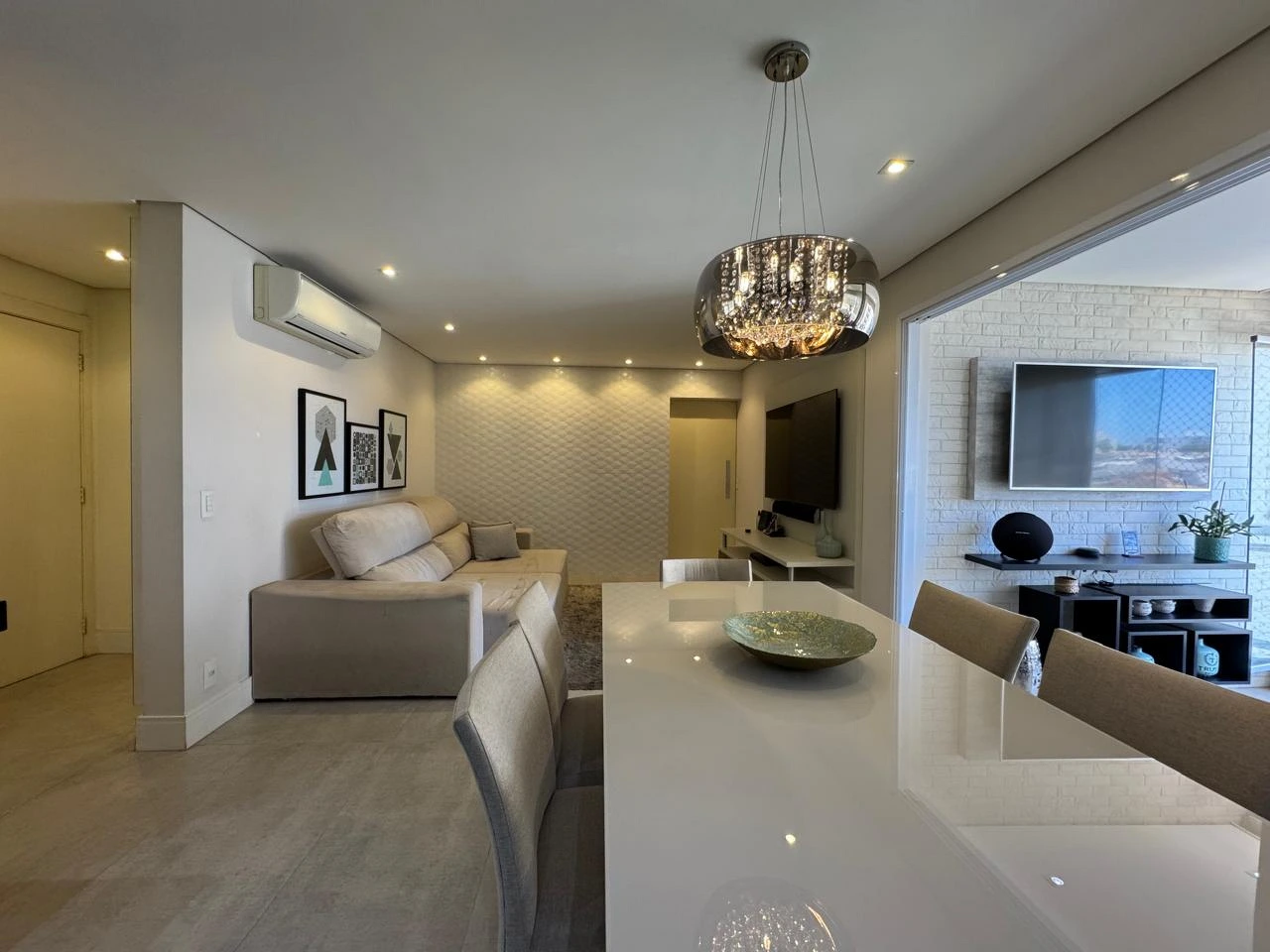 Apartamento mobiliado com 121 m² na Avenida Brasil, no Residencial Garnet. Possui 3 suítes climatizadas com marcenaria planejada, roupeiro, hall de entrada com lavabo, despensa, 2 vagas de garagem e living integrado com sala de TV, sala de jantar, cozinha e varanda gourmet com churrasqueira a carvão.