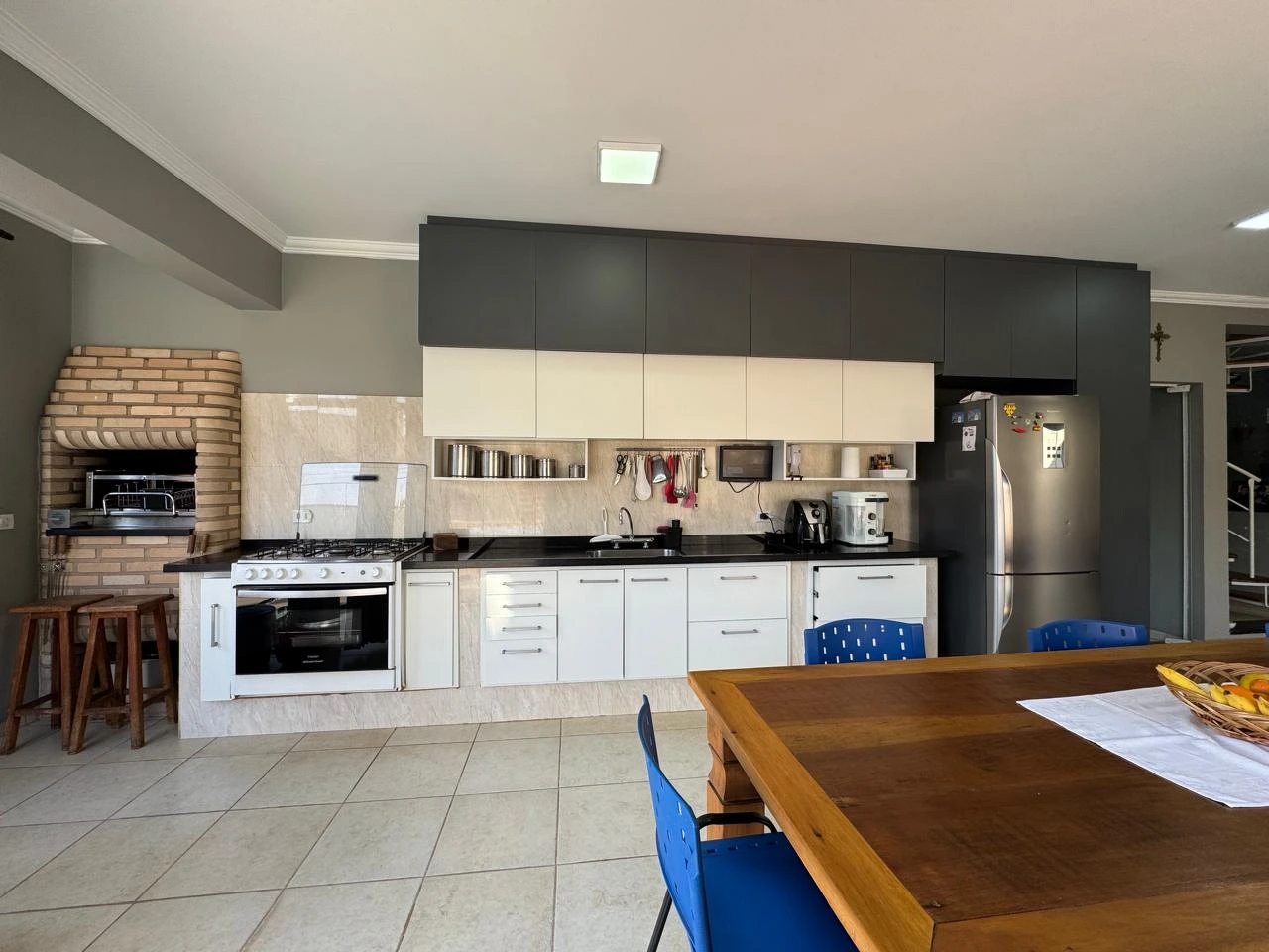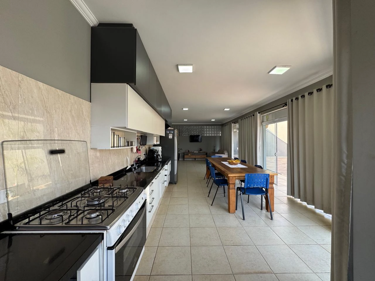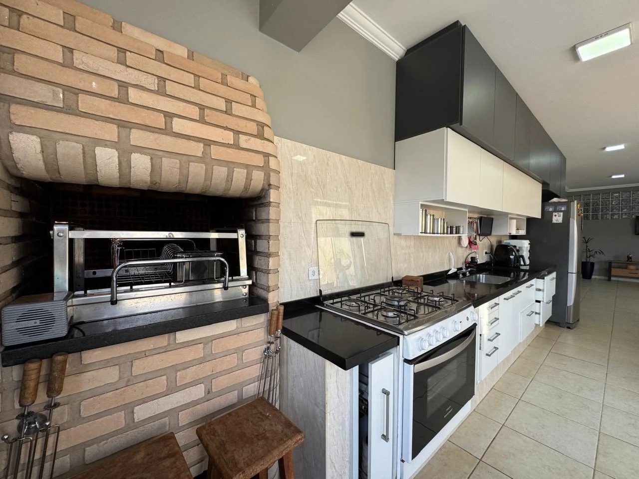 Ambiente integrado com sala de estar, cozinha gourmet planejada com churrasqueira, sala de jantar, lavanderia e banheiros feminino e masculino, além de uma magnífica área externa com piscina, perfeita para receber amigos e aproveitar momentos especiais.