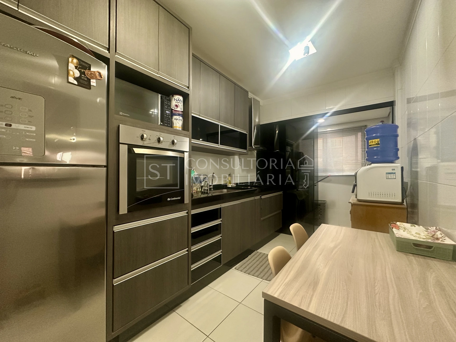 Ambientes bem planejados e iluminados, com sala integrada à sacada — perfeita para relaxar ao fim do dia. A cozinha funcional e os cômodos com armários oferecem praticidade no cotidiano, a área da lavanderia com divisória em blindex e armários. Conta ainda com armários planejados na nos dormitórios e banheiro, além de aquecimento elétrico.
