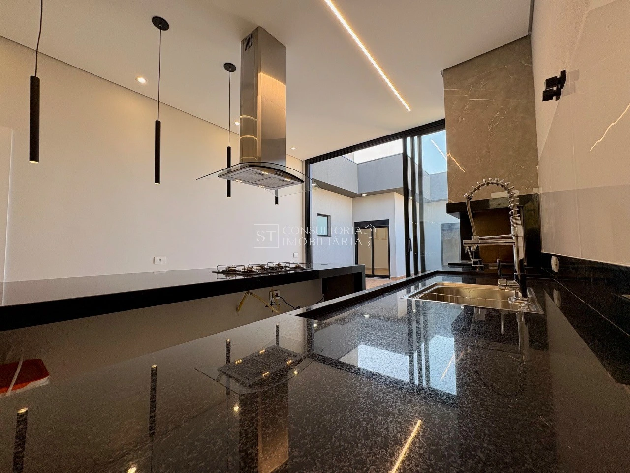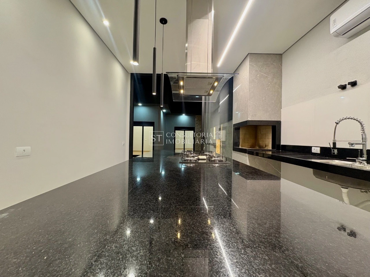 Cozinha com ilha central e área gourmet integrada, perfeita para receber amigos e viver momentos inesquecíveis com sua família.