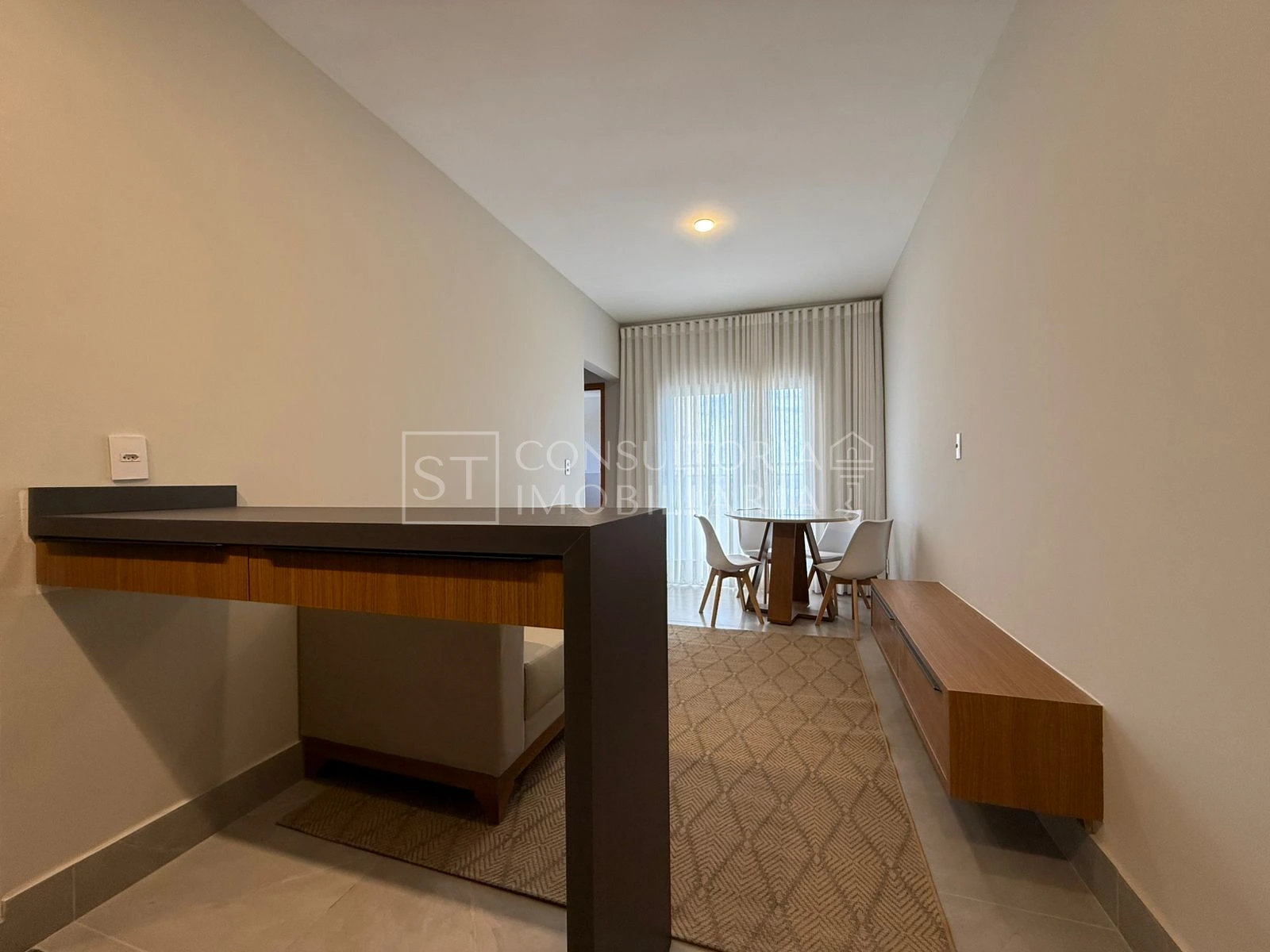 Apartamento com 02 dormitórios, sendo 01 suíte, sala de TV, cozinha, lavanderia e 01 banheiro social.