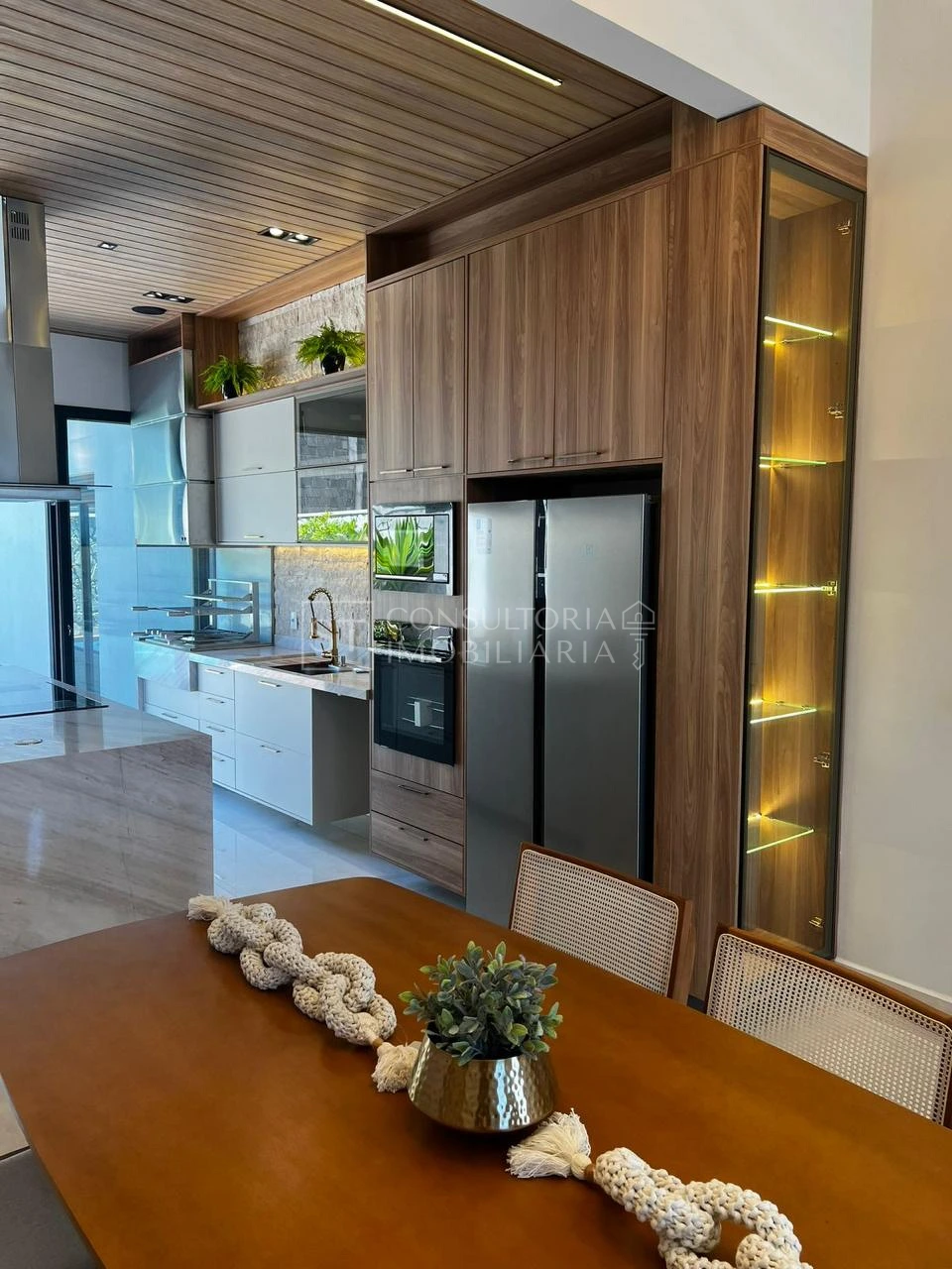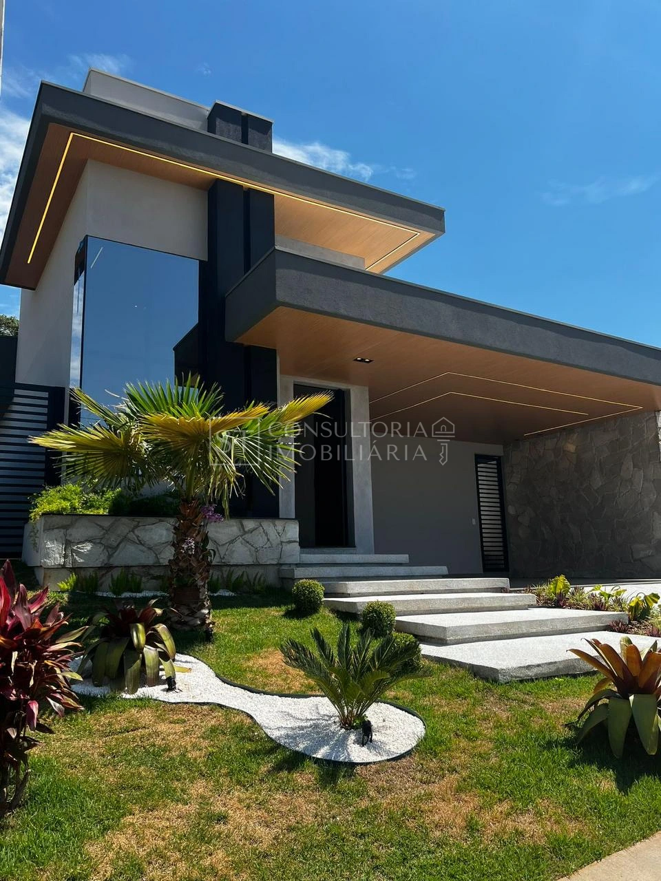 O acabamento é de alto padrão, com pisos em porcelanato, teto rebaixado com gesso, iluminação interna e externa em LED, luminárias modernas e sistema de automação para iluminação e som. A residência também conta com energia fotovoltaica, aliando sustentabilidade e economia.