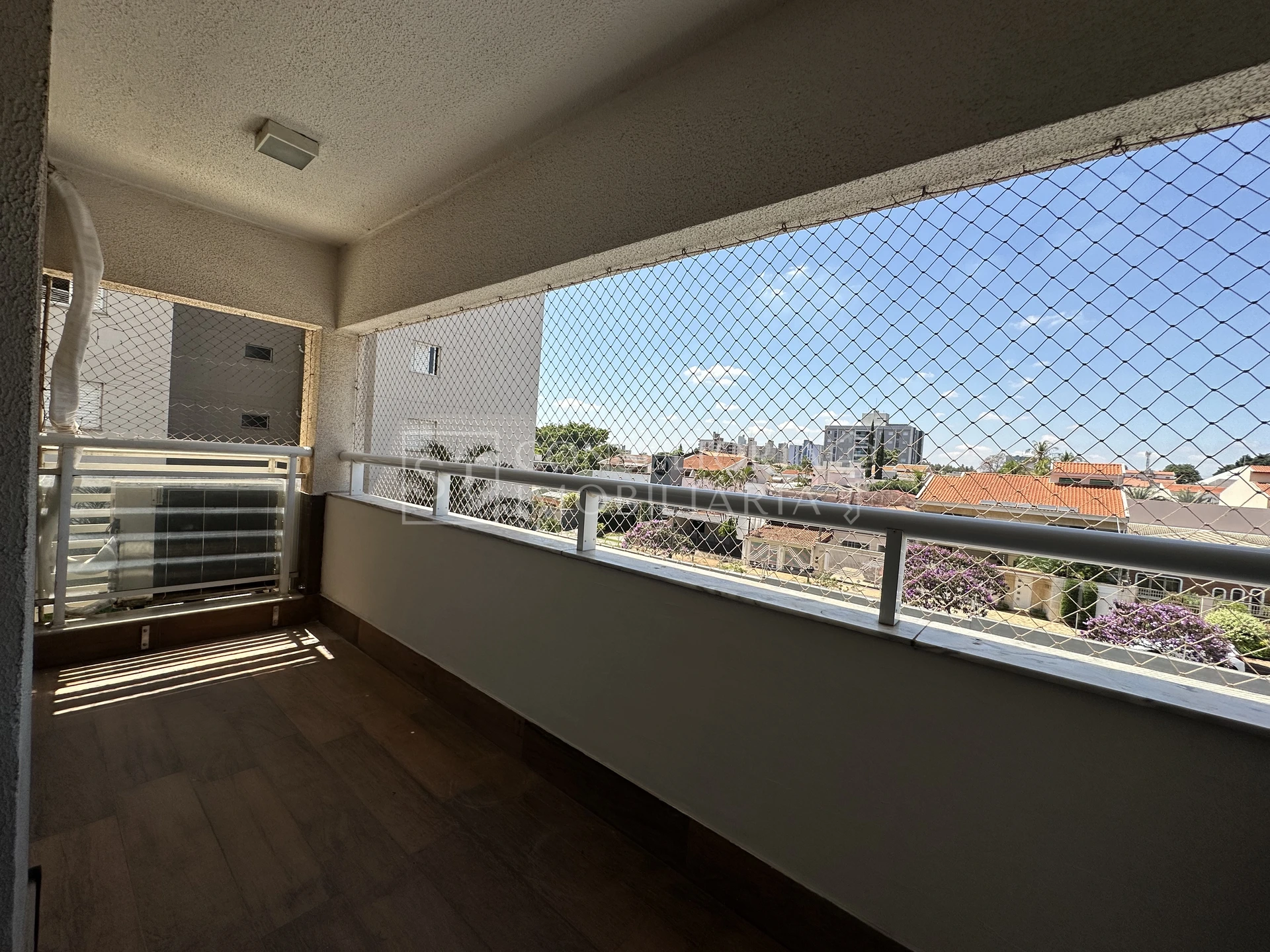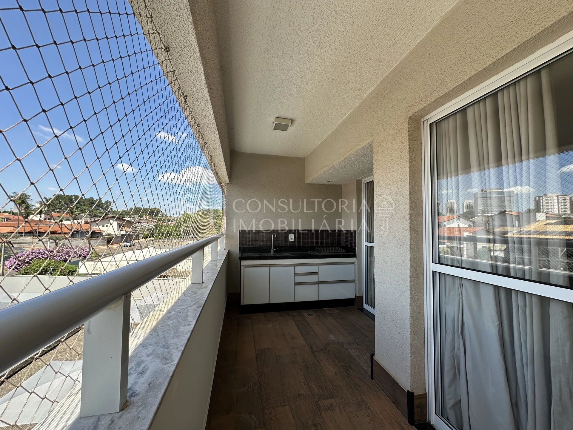 Espaçosa sacada com churrasqueira.