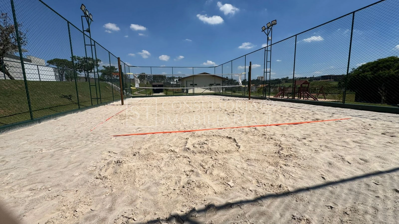 Localizado no Condomínio Fazenda Santa Lúcia, o condomínio oferece portaria 24 horas, além de uma infraestrutura completa de lazer com playground, academia, piscina, quadras esportivas, quadra de beach tennis, salão de festas e áreas verdes com árvores nativas.