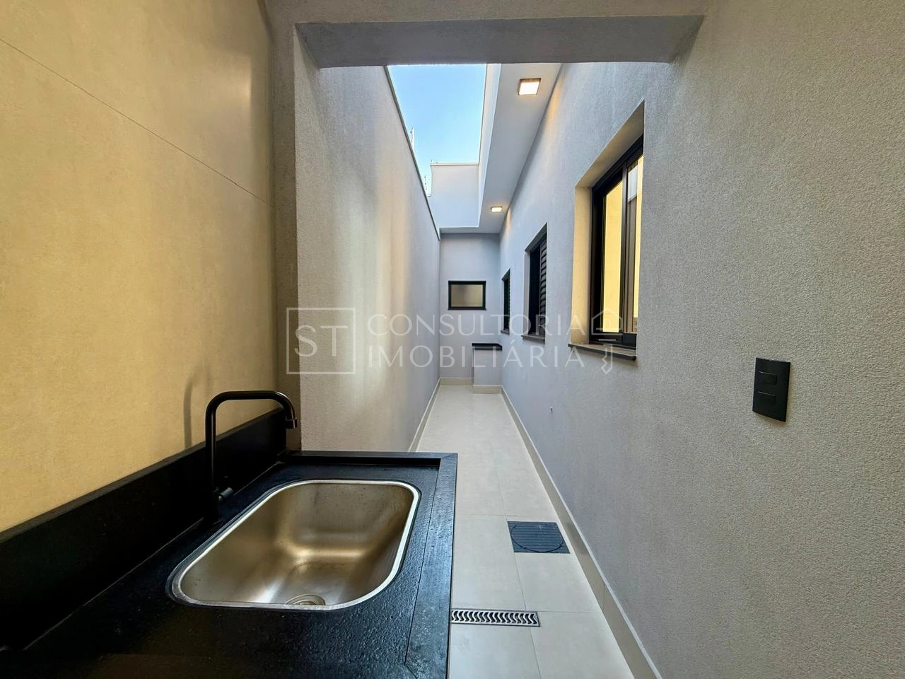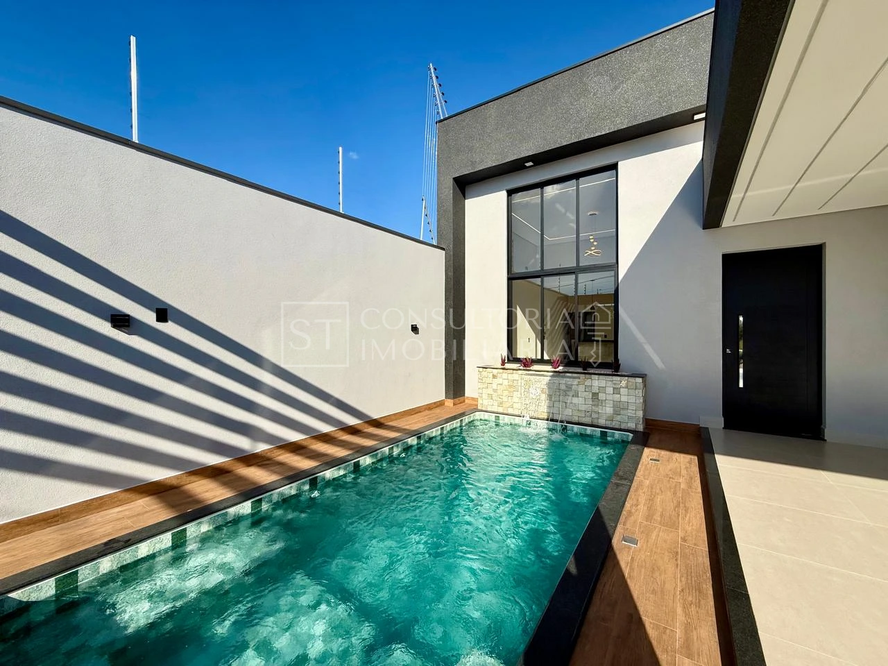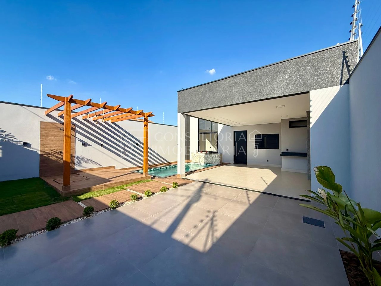 O imóvel conta com 3 quartos, sendo 1 suíte, 3 banheiros, sala integrada com a cozinha, lavanderia, área gourmet com piscina, jardim com pergolado e 3 vagas de garagem, em um terreno de 250m².