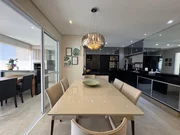 Apartamento com 3 suítes, lavabo, sala de TV, sala de jantar, cozinha, varanda gourmet (com churrasqueira), lavanderia.