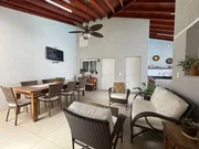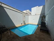 Sobrado, parte inferior: sala de estar, sala de jantar, cozinha, lavanderia, quarto, banheiro, escritório, area gourmet com piscina. Parte superior: sala de TV, tres quartos sendo 1 suite com closet.