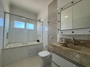 Na área externa, o destaque é o espaço de lazer completo, com piscina aquecida e churrasqueira, garantindo momentos de diversão e relaxamento em qualquer época do ano. A casa ainda oferece quarto de despensa e vaga para até quatro automóveis.
