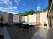 Além disso, a casa conta com uma área gourmet climatizada, com sala de estar/jantar, banheiro e uma cozinha gourmet com churrasqueira - tudo com entrada independente da casa. Para sua comodidade, a energia fotovoltaica já está instalada, com espaço para ampliação se necessário. A piscina aquecida possui trocador de calor, perfeita para relaxar em qualquer estação do ano.