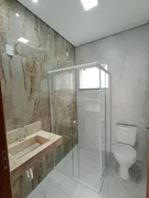 Casa com 3 quartos sendo 1 suíte, sala de jantar e sala de TV integradas, copa e cozinha americana, 2 banheiros sociais, espaço gourmet com churrasqueira e 3 vagas de garagem.