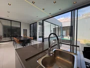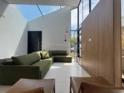 Você vai se encantar com o teto de vidro da sala, que possui uma nano película incolor que inibe 95% da caloria do sol, mantendo a casa sempre fresca e agradável.