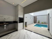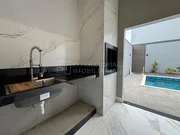 Casa com 3 dormitorios sendo 1 suíte, sala TV, sala de jantar, cozinha integrada, área gourmet, piscina, banheiro externo, lavanderia.