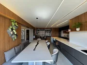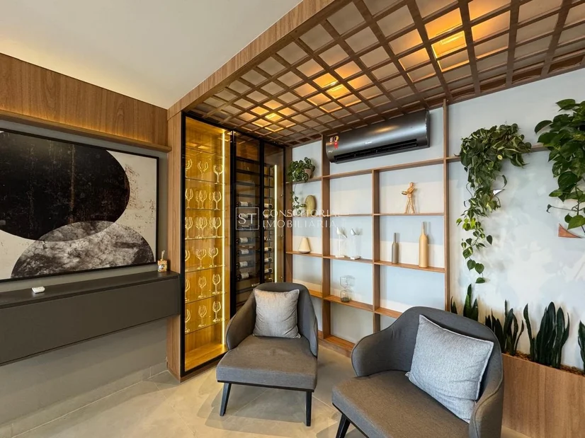 Com 123m² de área útil, este apartamento possui uma ampla sala de estar e de jantar integradas, cozinha, varanda e área de serviço. Além disso, conta com 03 suítes, 04 banheiros (sendo 01 lavabo) e 03 vagas de garagem.