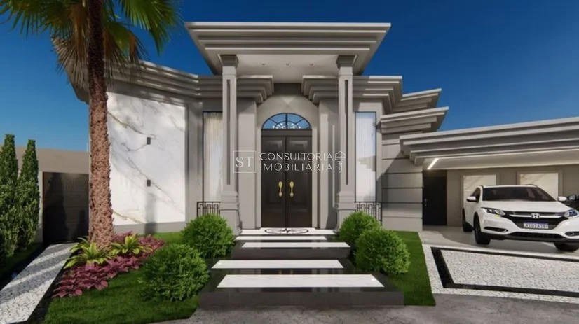 Com uma arquitetura térrea de pé direito alto, os ambientes integrados no living convidam a família a se reunir em uma sala de TV e jantar ampla, junto à cozinha que possui uma despensa para auxiliar no dia-a-dia. Os ambientes íntimos ficam reservados e, 3 suítes com amplos closets, oferecem privacidade e conforto. A suíte master, com portas de vidro com vista para a piscina, é um destaque especial.
