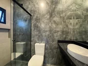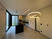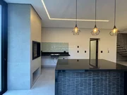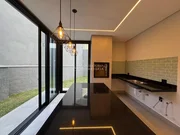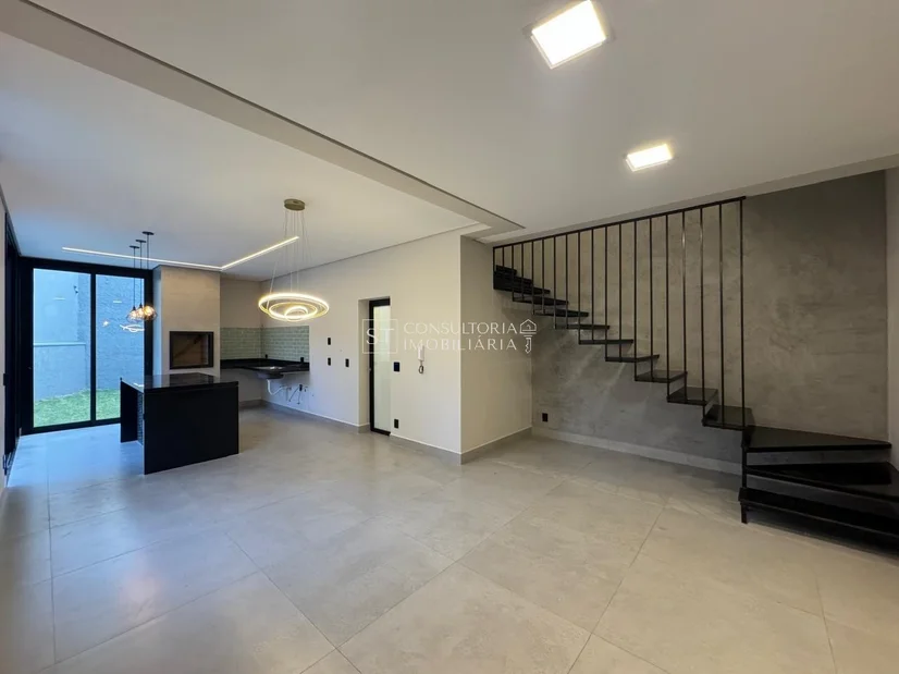 Sobrado moderno com projeto inteligente e ambientes integrados. No térreo, conta com lavabo, sala de TV, jantar e cozinha gourmet em conceito aberto, com ilha, churrasqueira e acesso ao quintal gramado ? ideal para futura instalação de piscina. Possui também despensa e lavanderia com entrada independente.
