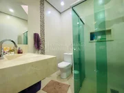 Casa com 03 quartos, sendo 01 suíte com closet, 01 banheiro social, 3 lavabos, sala de jantar, sala de tv, cozinha com despensa para alimentos, área gourmet completa com piscina, forno a lenha e churrasqueira. Ambos os ambientes no piso térreo.