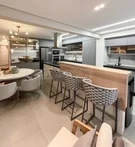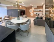 Apartamento decorado e mobiliado com 121 m² na Avenida Brasil, no Residencial Garnet. Possui 3 suítes com marcenaria planejada, hall de entrada com lavabo, despensa, 2 vagas de garagem e living integrado com sala de TV, cozinha gourmet completa e integrada a varanda.
