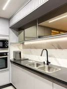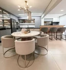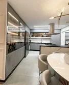 Apartamento com 3 suítes, lavabo, sala de TV, sala de jantar, cozinha, varanda gourmet (com churrasqueira), lavanderia.