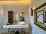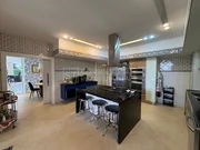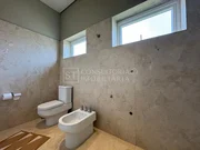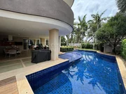 O piso inferior impressiona pela grandiosidade e integração dos ambientes. Dispõe de hall de entrada, quatro salas integradas, home theater, home office, escritório com banheiro (podendo ser utilizado como suíte), suíte para hóspedes, lavabo, cozinha planejada, despensa e lavanderia. O espaço gourmet é um destaque à parte, com churrasqueira, adega e integração total aos ambientes sociais, ideal para receber com elegância.