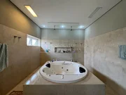 A residência conta ainda com sistema de automação, sonorização independente nos ambientes de convivência, iluminação externa automatizada, energia solar com placas fotovoltaicas e garagem coberta para até 6 veículos, unindo conforto, sustentabilidade e tecnologia.