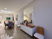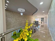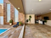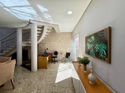 Casa com 360m² de construção em terreno de 300m², contendo 3 quartos sendo 2 suítes (uma com closet e espaço para banheira), 5 banheiros, 2 salas de TV, sala de visitas integrada com copa, cozinha planejada com acabamento em alumínio, 3 varandas, área de serviço e área de lazer completa com piscina e ofurô.